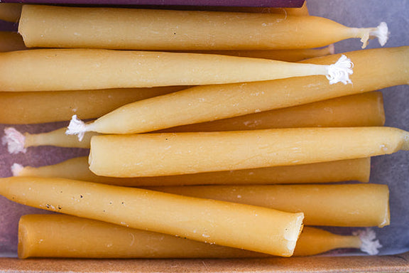 100% Beeswax taper candles that burn for 20-25 minutes.
